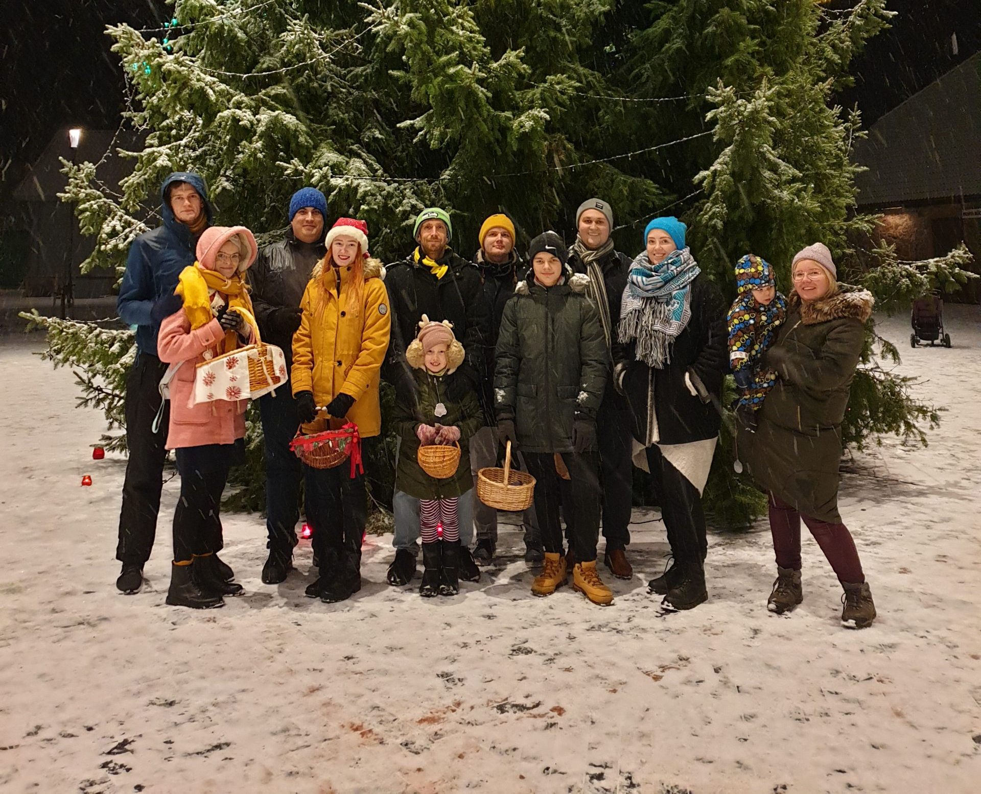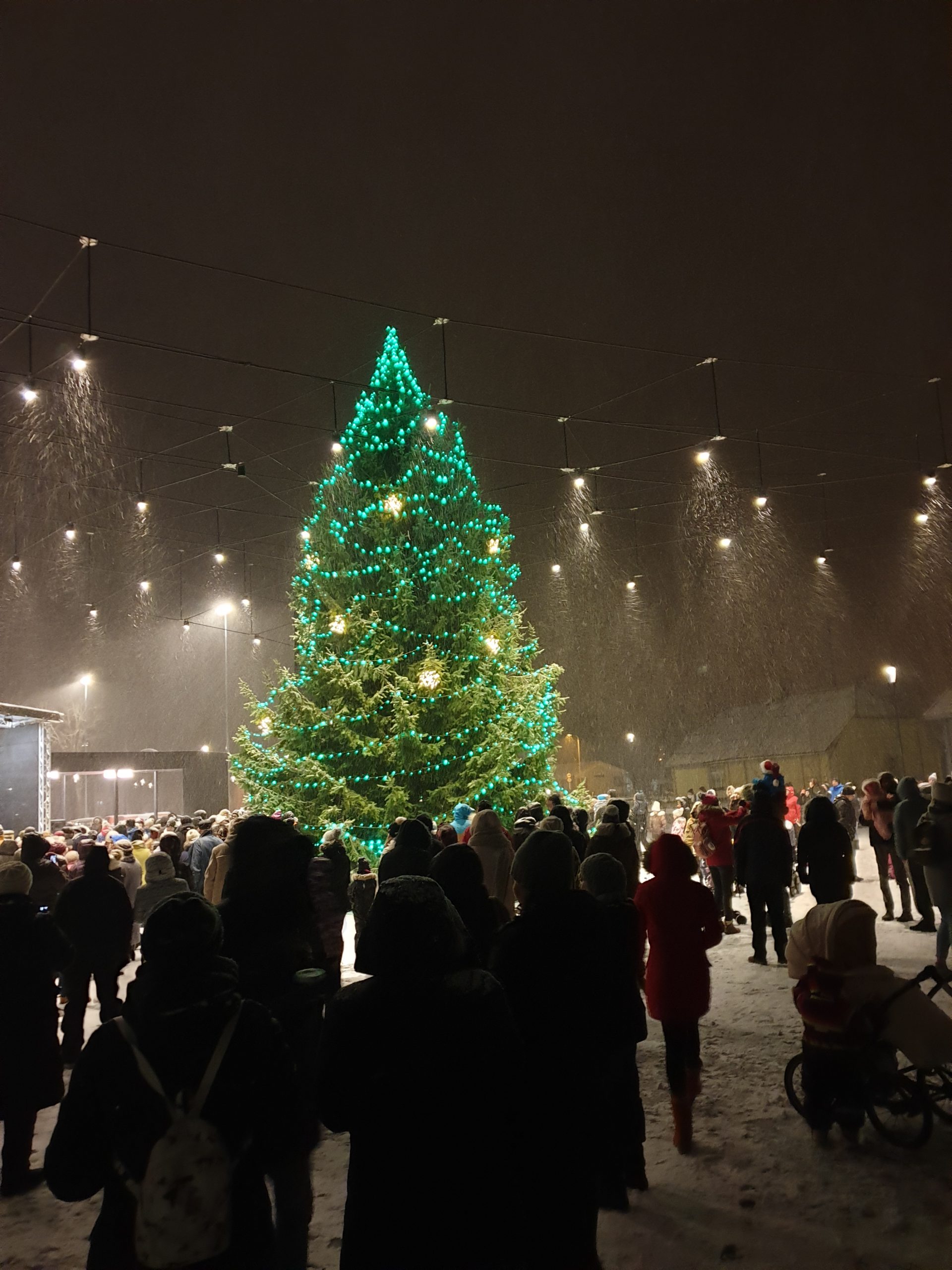 Piparkoogid läksid nagu soojad saiad. Mõnel jagajal oli korv juba 15 minutiga tühjaks saanud. Lisaks magusale jagasime magusat infot meie raadio toimumise kohta. Kuuse tulede süütamine toimus väga ilusas lumesajus ning tõeline jõulutunne puges hinge!